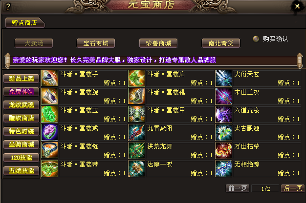 【全网独家】:所有5代神器,重楼,属性时装全部1个赠点购买,做到真正的免费